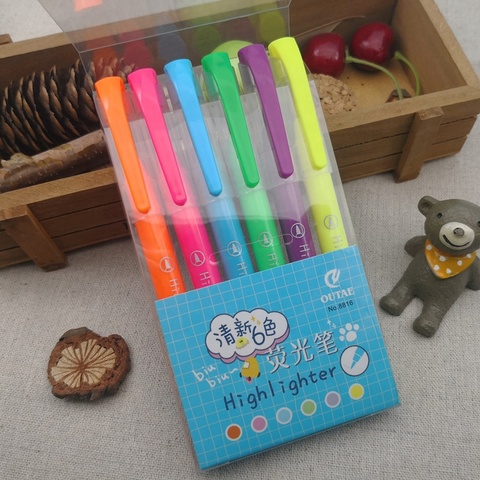 Promocional de buena calidad 4mm cincel alisado fluorescente Color púrpura 6 colores resaltador conjunto de bolígrafos